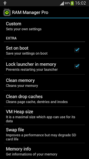 - Default - This option reverts your RAM to your default settings, which you had before you installed this app.